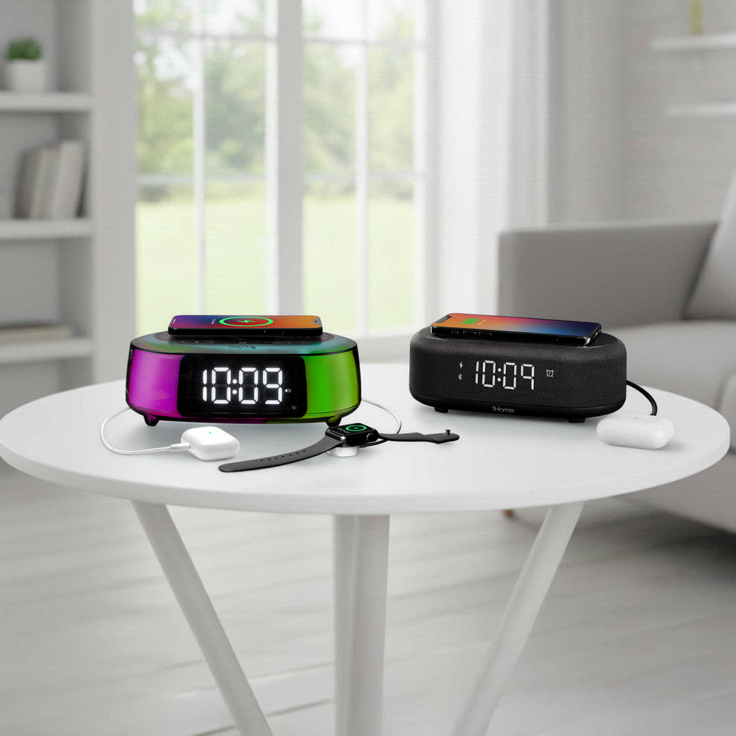 Rest, recharge, and streamline your nightly routine with the iHome iBTW112 – a Bluetooth alarm clock with wireless charging and USB charging designed to complement any bedroom, home office, or dorm space. Rise to Bluetooth audio or traditional alarm tones for a fully personalized morning routine.