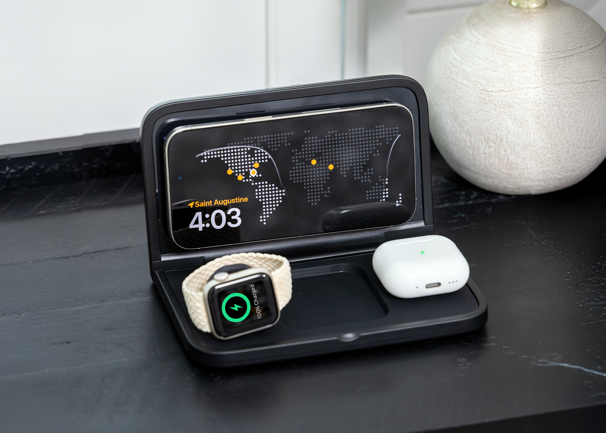 Keep your AirPods & Apple Watch ready to go with a dedicated charging spot made for a perfect fit.